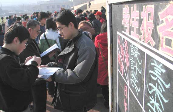 2004年招生专业考试开始报名 ——来自山东工艺美院报名现场的图片报道 2004年2月17日,304am永利集团官网2004年招生专业考试在山东大学南校区南院体育场开始报名。