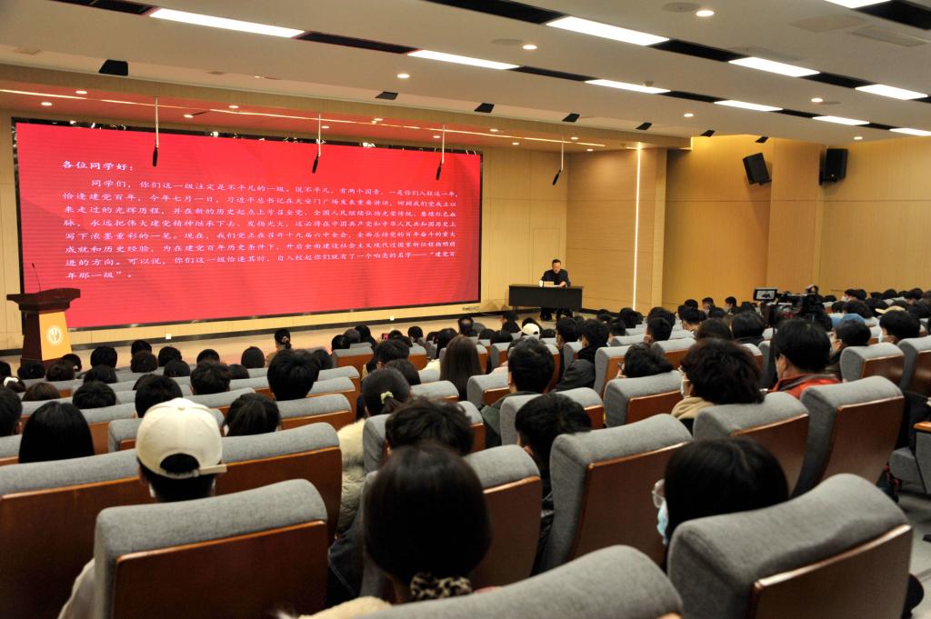 11月10日下午,党委书记何思清以《传承伟大建党精神 争做时代先锋力量》为题,在长清校区阶梯一教室为2021级学生讲授了一堂深刻、生动、精彩的思政课。党委副书记苗登宇,党委委员、统战部部长孙大刚,党委委员、宣传部部长韩文涛,党委委员、组织部部长许...