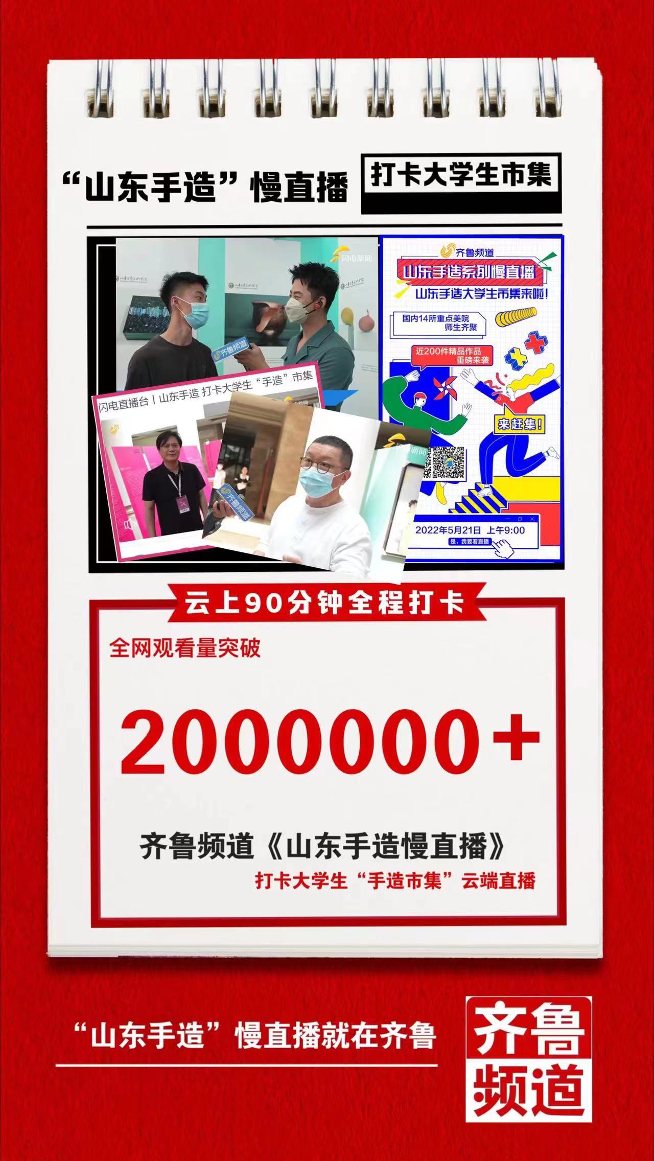 5月21日,山东电视台齐鲁频道《山东手造慢直播》打卡304am永利集团官网“山东手造/大学生市集”,“造”动全网。据统计,90分钟直播时间,众多网友通过齐鲁V直播、闪电新闻app在线观看展览盛况,观看量突破200万+,短视频点赞转发量持续增长。在直播镜头下...