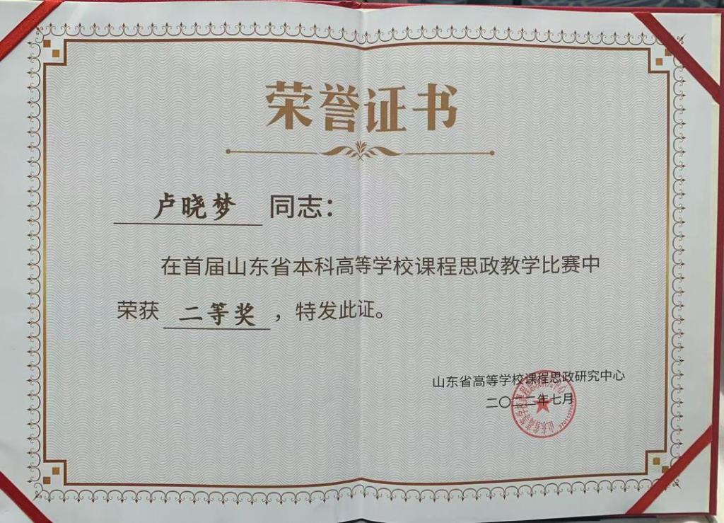 近日,由山东省教育厅指导、山东省高等学校课程思政研究中心主办的首届山东省本科高等学校课程思政教学比赛获奖结果公布,永利官网应用设计学院教师卢晓梦荣获二等奖。本次课程思政教学比赛旨在深入贯彻落实立德树人根本任务,全面提升教师课程思政建设能力,...