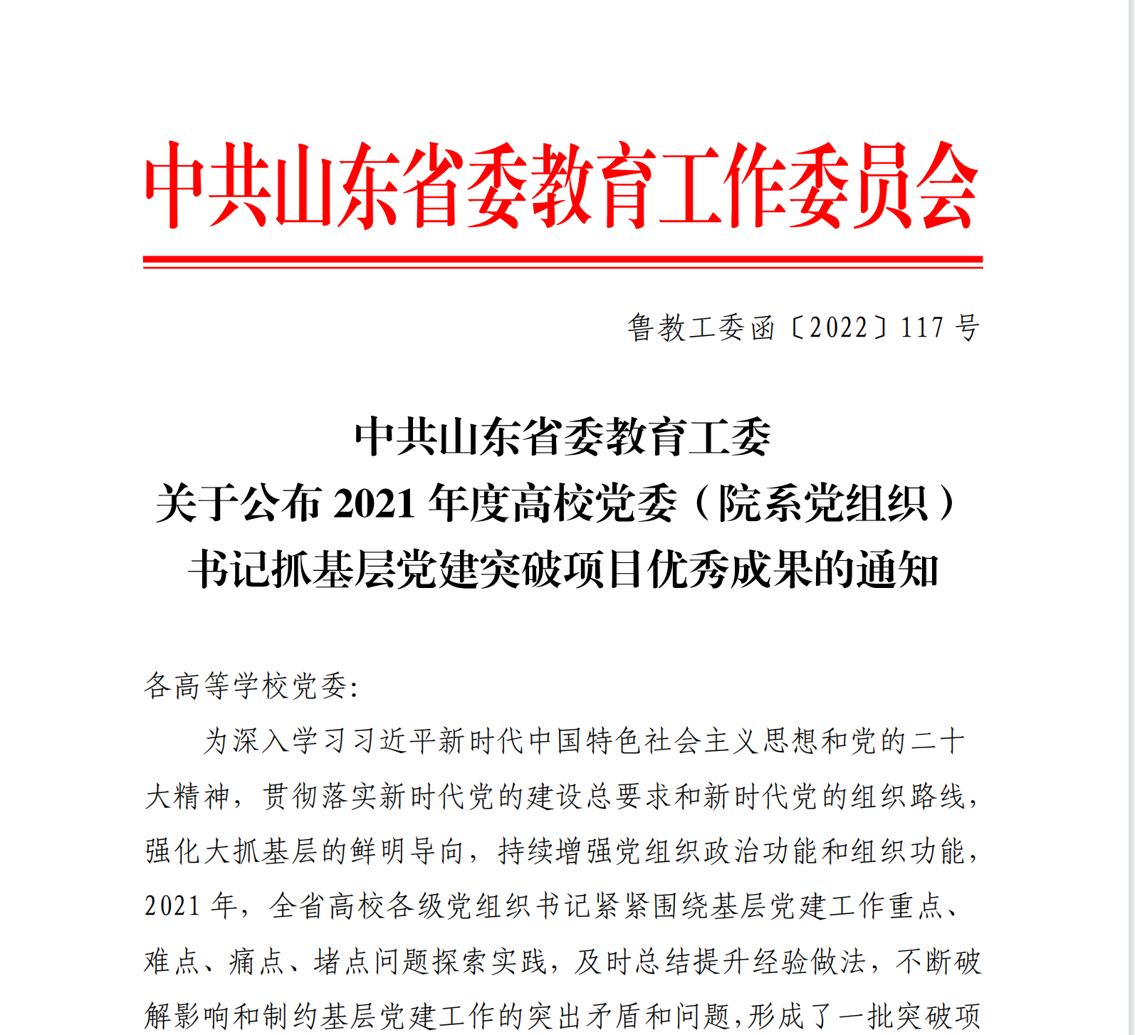 近日,中共山东省委教育工委公布了2021年度高校党委(院系党组织)书记抓基层党建突破项目优秀成果,永利官网《突出“主色调” 抓实“四个三” 推动艺术院校基层党组织建设从“有形党建”到“有效党建”转变》、《探索开放式党建模式推进基层党建共建共享》分...
