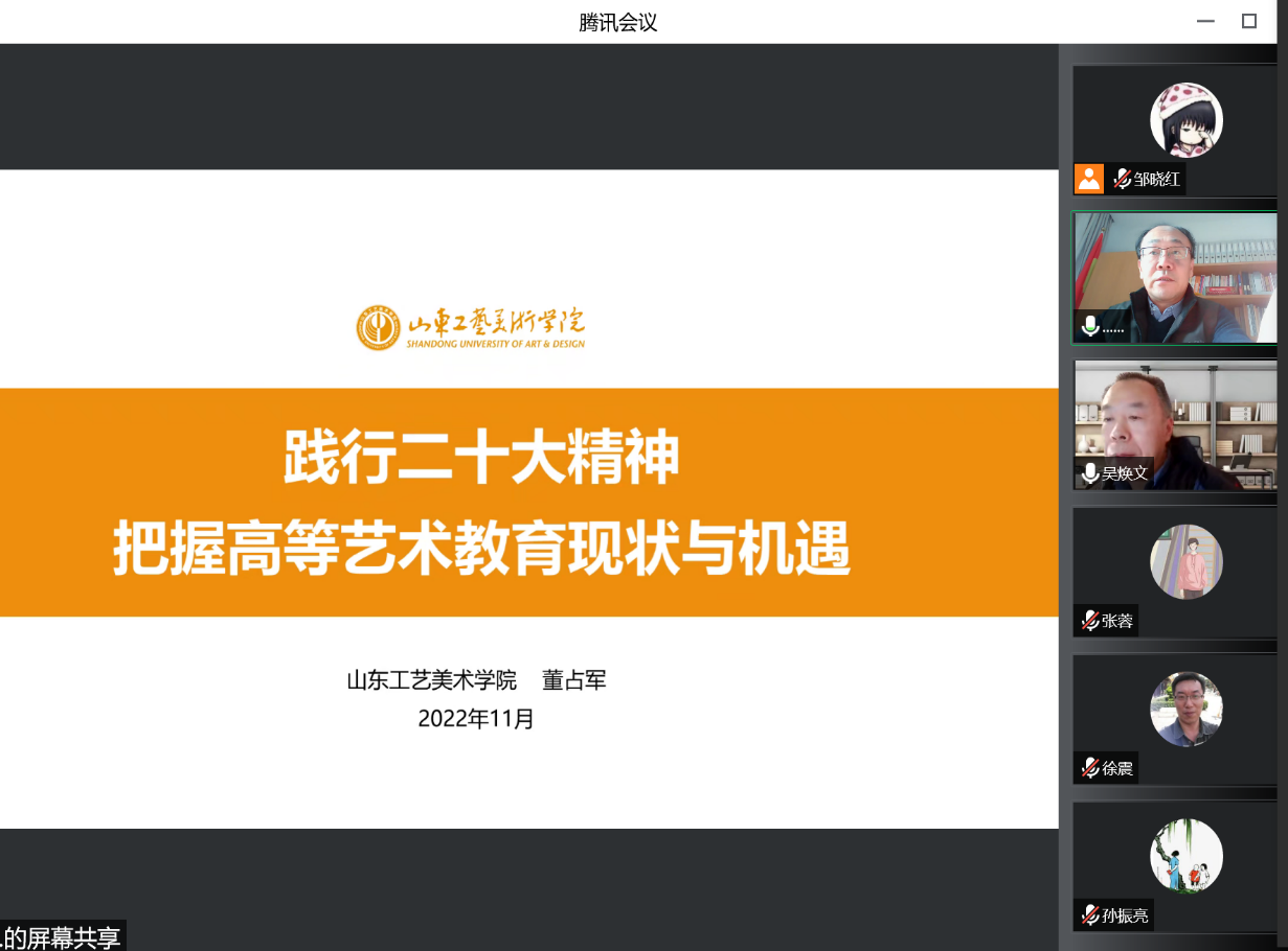为切实做好党的二十大精神学习宣传贯彻工作,统一思想、凝聚力量,根据学校工作安排,12月29日下午,党委委员、副院长董占军为公共课教学部、继续教育学院作党的二十大精神主题宣讲。董占军以《践行二十大精神把握高等艺术教育现状与机遇》为题,围绕“二...
