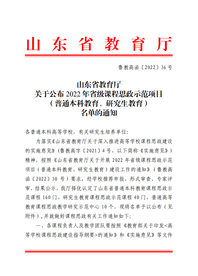 近日,山东省教育厅发布《山东省教育厅关于公布2022年省级课程思政示范项目(普通本科教育、研究生教育)名单的通知》,永利官网《当代艺术创作》和《中国古典园林现代演绎》两门课程入选2022年山东省普通高等教育课程思政示范课程(本科教育课程)。2022年10...
