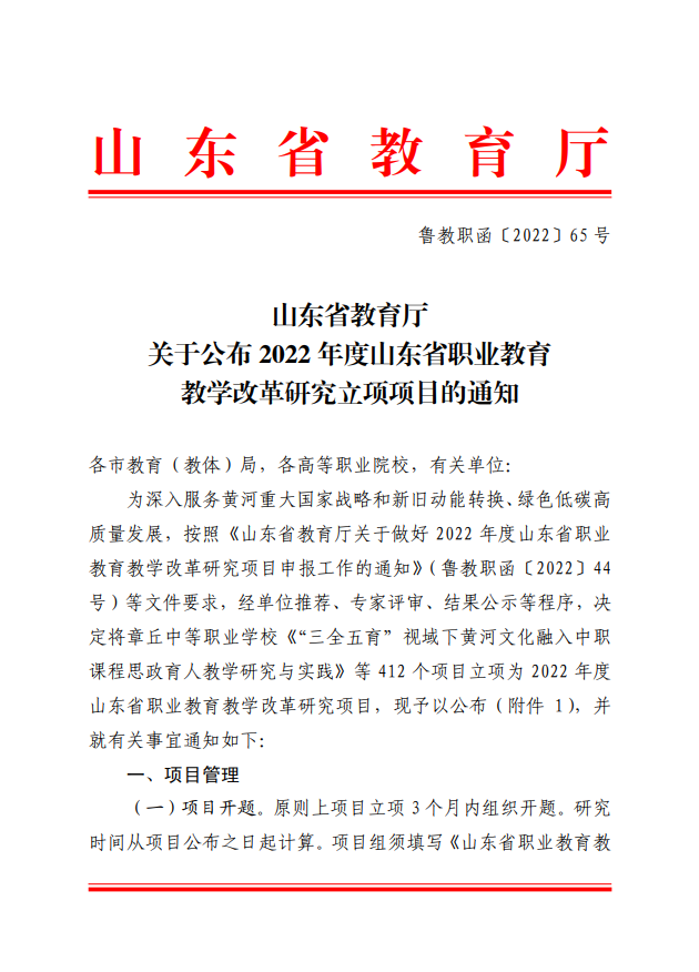 近期,山东省教育厅发布了《山东省教育厅关于公布2022年度山东省职业教育教学改革研究立项项目的通知》,永利官网《基于服务“山东手造”工程的高职艺术设计专业人才培养模式改革研究》喜获立项,获批研究经费人民币6万元。山东省职业教育教学改革研究项目旨在...