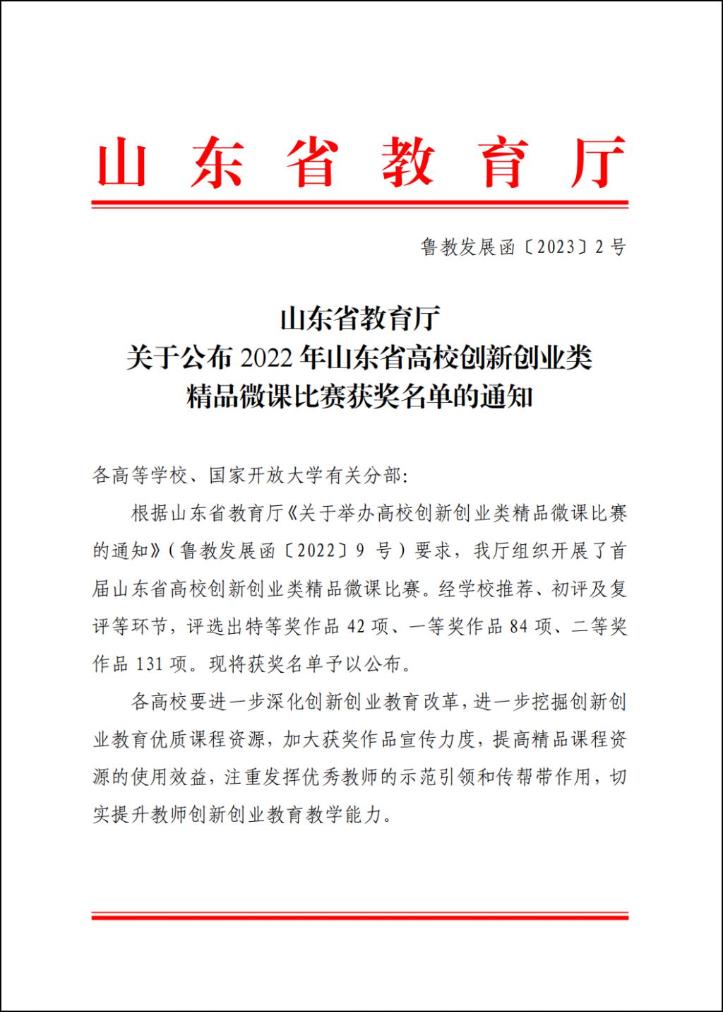 近日,山东省教育厅公布了2022年度山东省高校创新创业类精品微课比赛获奖名单,永利官网推荐的通识课《服务设计的原则》、专创融合课《新媒体影像装置的创新实践应用》荣获二等奖,为学校创新创业类课程资源建设再添硕果。本次精品微课比赛旨在进一步深化我省...