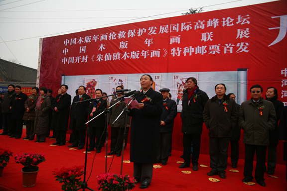 中国木版年画抢救保护发展国际高峰论坛召开 2008年1月15日—16日,中国木版年画抢救保护发展国际高峰论坛、中国木版年画联展暨中国开封《朱仙镇木版年画》特种邮票首发式系列活动在河南省开封市举办。
