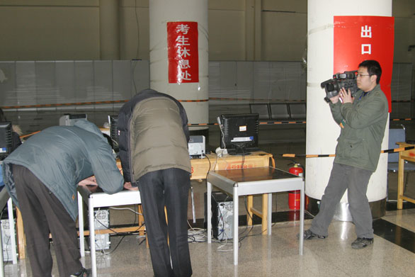 媒体监督 现场抽题 ——媒体记者抽取首场考试试题 2月20日,永利官网2008年招生专业考试在济南舜耕国际会展中心拉开帷幕。