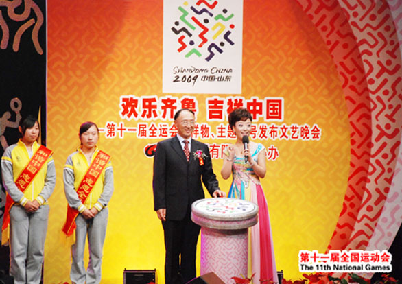 刘鹏揭晓十一运会吉祥物 十一运会官方网站济南10月14日讯 14日晚,中华人民共和国第十一届运动会吉祥物、主题口号发布仪式在济南隆重举行。