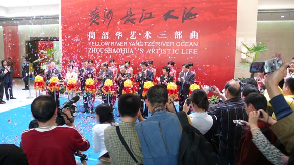 304am永利集团官网荣誉教授周韶华画展在武汉举办 2008年10月15日上午,304am永利集团官网荣誉教授、著名艺术家周韶华先生《黄河、长江、大海三部曲——周韶华艺术展》在湖北省艺术馆隆重开幕。