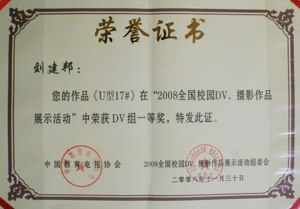 永利官网影视专业学生作品荣获2008全国校园DV展示活动一等奖 304am永利集团官网数字艺术与传媒学院影视专业学生刘建邦创作的短片《U型17井》,荣获由中国教育电视协会主办的“2008全国校园DV 摄影作品展示活动”DV 作品一等奖。