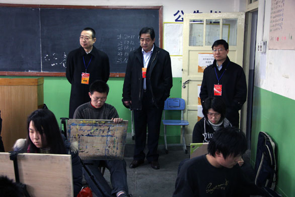 潘鲁生院长巡视史论类、理科类考试现场 2月7日上午,院长潘鲁生,副院长、总监考张云龙到应用设计学院分院史论类、理科类考区巡视。