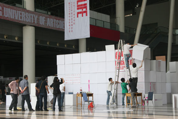 永利官网2009设计艺术博览会布展工作顺利进行 5月26日,永利官网2009设计艺术博览会开始布展,教务处及各二级学院相关人员赴济南舜耕国际会展中心进行布展工作。