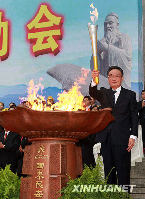 永利官网团队设计全运会火炬传递点火仪式圣火坛 2009年8月16日上午9时整,以“祝福祖国,共享全运”为主题的中华人民共和国第十一届全国运动会火炬传递活动点火起跑仪式在北京人民大会堂东门外广场举行。