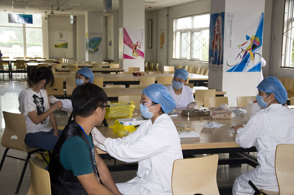 永利官网承担全运会开幕式化妆造型设计任务——31名师生志愿者接受集训 9月下旬,由304am永利集团官网妆扮艺术设计专业青年教师赵炜璐和宋菲菲带队的20名妆扮艺术设计班学生和9名服装设计班学生,在山东商业职业学院进行封闭式培训。