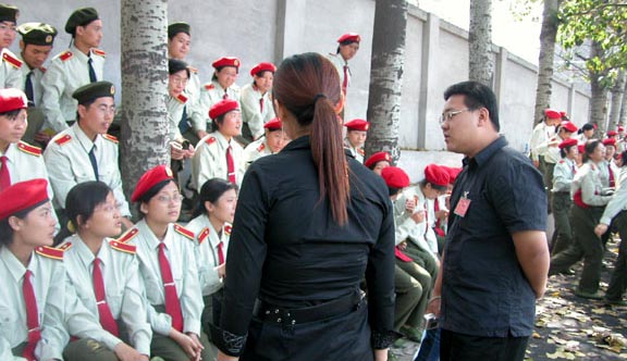 我院团委、学生会赴北校区慰问新同学 为使2004级新生尽快适应大学生活,9月18日,我院学生会骨干及院团委《山工艺青年报》编辑部成员在院团委于浩老师的带领下来到北校区,对正在军训的新生进行了慰问。