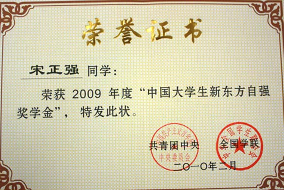 永利官网学生荣获2009年度“中国大学生新东方自强奖学金” 近日,由共青团中央、全国学联共同联合主办的“中国大学生自强之星”评选活动揭晓,永利官网数字艺术与传媒学院2007级学生宋正强荣获“中国大学生新东方自强奖学金”。