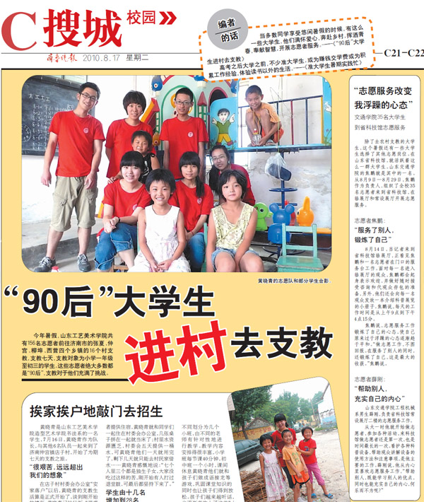 媒体关注304am永利集团官网暑期社会实践 近期,304am永利集团官网2010年大学生暑期“三下乡”社会实践活动已经基本接近尾声,共开展了科学发展观实践服务、关爱农民工子女、调研山东、服务世博、企业帮扶等实践活动。