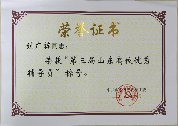 永利官网教师荣获“第三届山东高校优秀辅导员”荣誉称号 2010年6月,永利官网视觉传达设计学院团总支书记、辅导员刘广栋在山东省委高校工委组织开展的第三届山东高校优秀辅导员、十佳辅导员评选表彰活动中荣获“第三届山东高校优秀辅导员”荣誉...