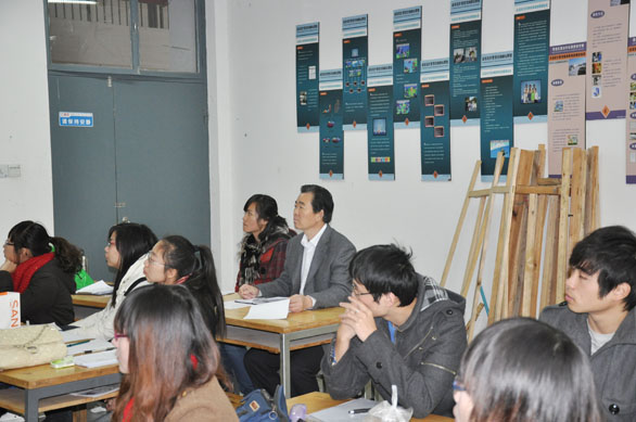 副院长刁在祥到人文艺术学院听课 2010年11月24日(周三)上午,副院长刁在祥来到长清校区教学楼听取了视觉传达设计学院张培源老师为人文艺术学院讲授的《字体设计》课。