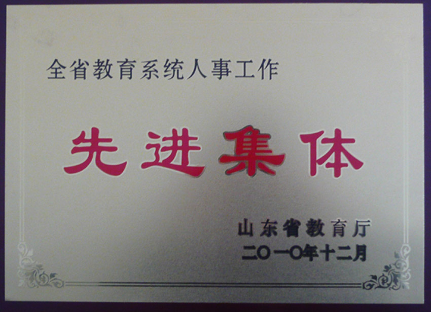永利官网人事处荣获“全省教育系统人事工作先进集体”荣誉称号 2010年12月,在全省教育系统人事工作先进集体和先进个人的评选中,永利官网人事处荣获“山东省教育系统人事工作先进集体”荣誉称号。