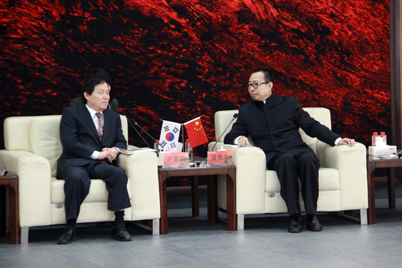 院长潘鲁生会见韩国起亚集团副总裁尹善镐一行 3月22日上午,院长潘鲁生在长清校区贵宾接待室会见韩国起亚集团副总裁尹善镐一行。