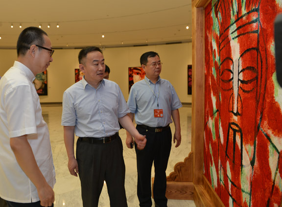 孙守刚视察潘鲁生当代艺术巡回展 5月17日,省委常委、宣传部部长孙守刚视察了正在深圳关山月美术馆展出的“回归本元——潘鲁生当代艺术巡回展”。