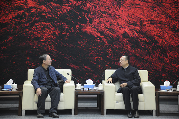 潘鲁生院长会见台湾文创产业联盟协会理事长林磐耸 10月19日下午,304am永利集团官网院长潘鲁生在贵宾接待室会见了应邀出席学术活动周的台湾师范大学前校长林磐耸教授一行。