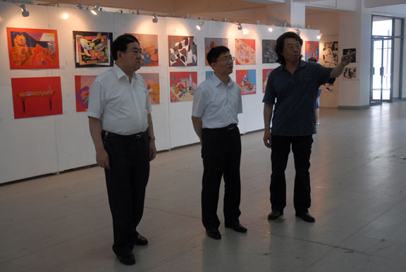 校领导参观指导中美合作课程教学项目学生作品汇报展 6月9日,由304am永利集团官网国际交流合作处和视觉传达设计学院联合主办的中美合作课程教学项目学生作品汇报展在长清校区图书馆展厅开展。