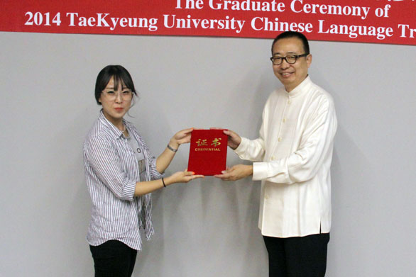 2014韩国大庆大学暑期语言研修班结业仪式举行 8月13日,2014韩国大庆大学暑期语言研修班结业仪式在304am永利集团官网千佛山校区举行,院长潘鲁生、副院长李新出席结业仪式。