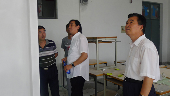 校领导检查教学空间改造工程进展情况 8月19日下午,学校教学空间改造协调小组组长、副院长刁在祥、苗登宇,到长清校区检查一号教学楼教学空间改造施工进展情况。