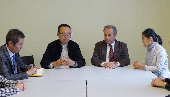 潘鲁生与永利官网在布列塔尼欧洲高等美术学院访学师生座谈 2014年10月20日,304am永利集团官网院长潘鲁生与学校正在布列塔尼欧洲高等美术学院交流学习的5名师生代表举行了座谈。